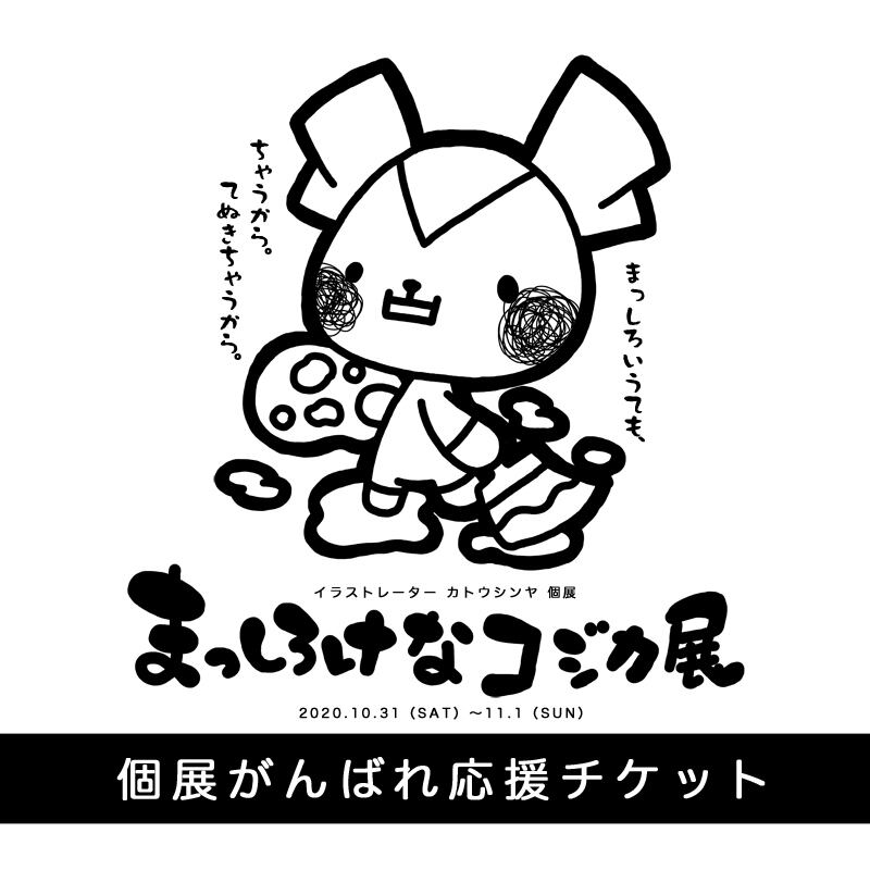2020年10月31日~11月1日に開催される「まっしろけなコジカ展」の応援チケットです。このチケットは来場するためのチケットではなく、作者カトウシンヤへの応援チケットとなります。